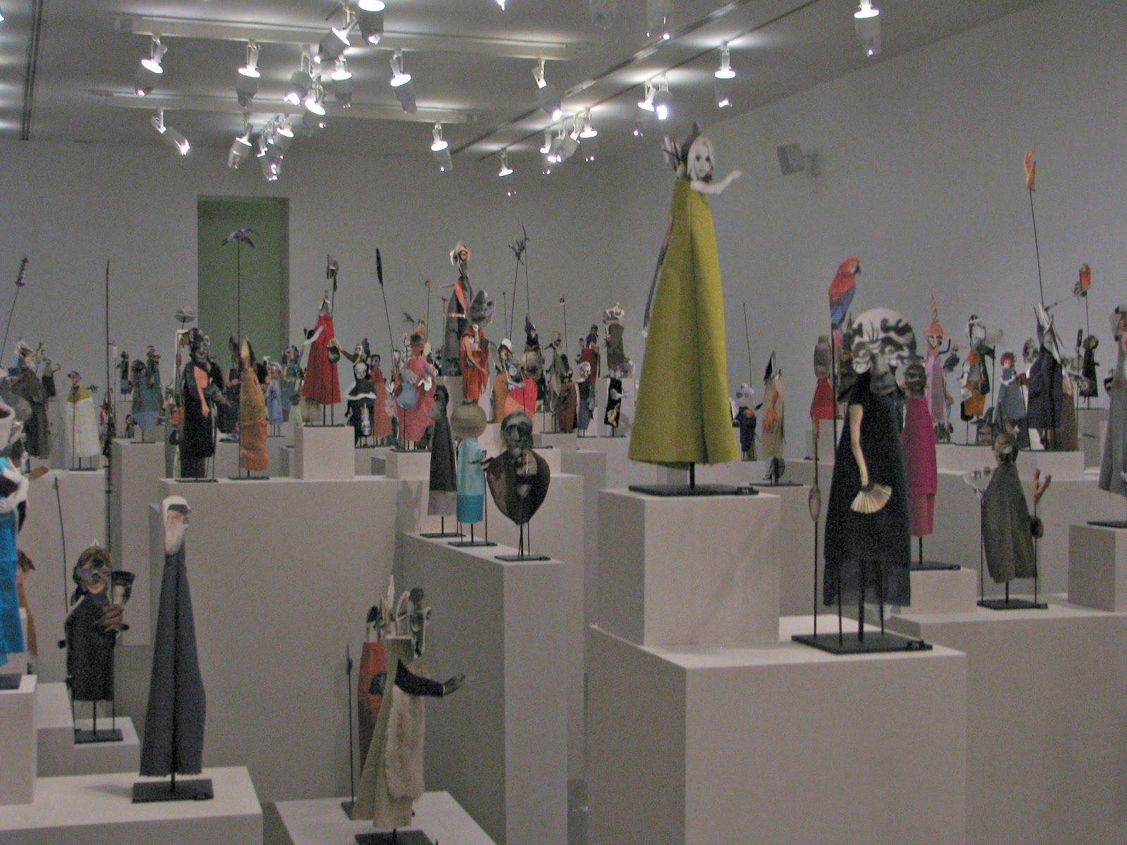 My favorite exhibit was the puppet gallery by an artist I cannot for the life of me remember and I can't find any information about it on the website! It was a series of puppets made from fabric and cut out pages from books, magazines, etc to make characters. I could have looked at those figuring out the symbolism and the artist's vision for hours. I also enjoyed an exhibit with cut-outs from a history book placed categorically, for example dictators and medical innovations together. Kinda of makes me want to tackle some book art myself!
