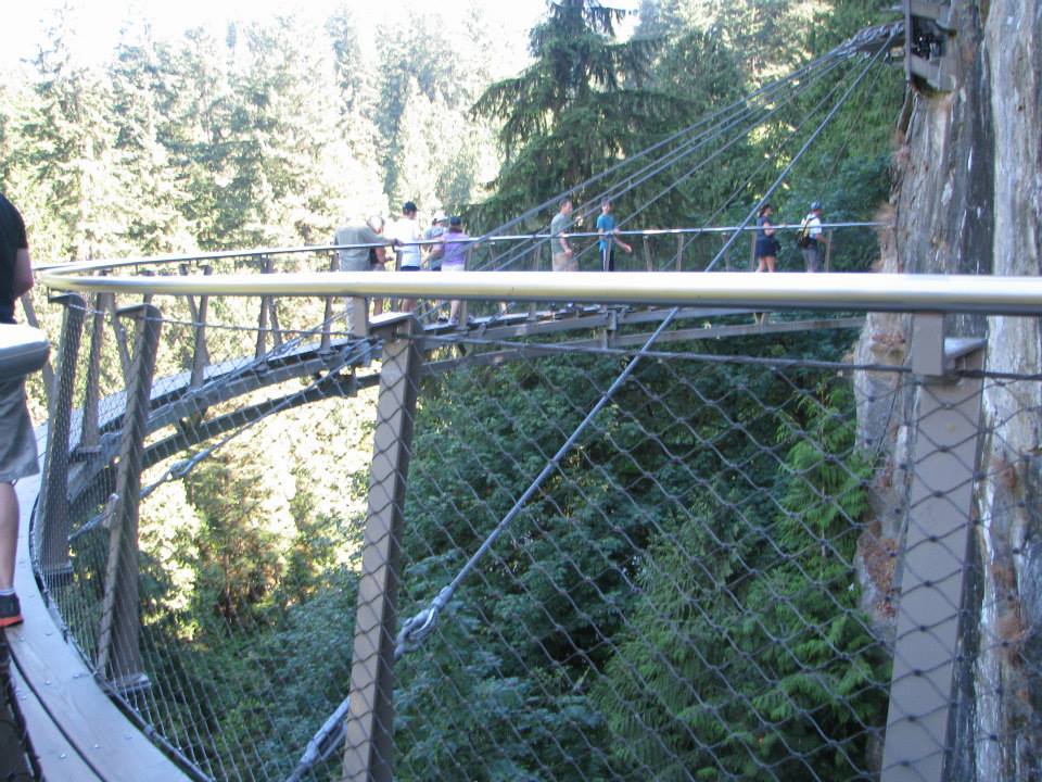 The first must-stop on our adventure was the Capilano Suspension Bridge Park located in North Vancouver. The park is one of the most popular places to visit in Vancouver, and it doesn't disappoint. The main attraction is the suspension bridge, but first we did the Cliffwalk (pictured at left). The Capilano Suspension Bridge was built in 1889 and stretches 450 feet across and 230 feet high above the Capilano River. Did I mention it was a suspension bridge? Did you know that means IT MOVES?! Can you see my fear? It's real. Every time it moved, I was convinced it was going to flip over and we were going to plummet 230 feet to the bottom of a canyon. Rick had to give me some tough love to keep me moving and then talk me through walking the entire bridge so I wouldn't have a panic attack. The couple walking behind us were legitimately concerned. They high-fived me when I made it across.